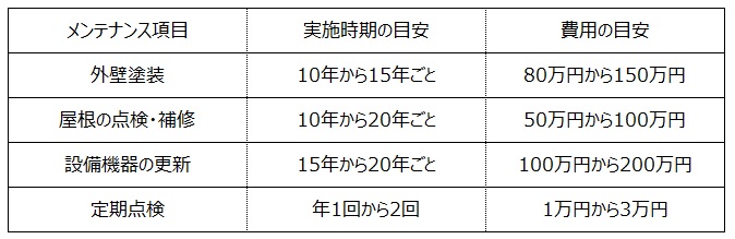 ただし、JTIの残価保証を受けるためには、長期メンテナンスプログラムを実施し、住宅の品質を維持することが必須条件となるため、定期的な点検や計画的な修繕に費用と手間がかかります。ある住宅メーカーは以下のような費用がかかるとホームページで公開していますが、仮に住宅取得後60年間住む場合は、安く見積もっても830万円程度の費用が掛かります。